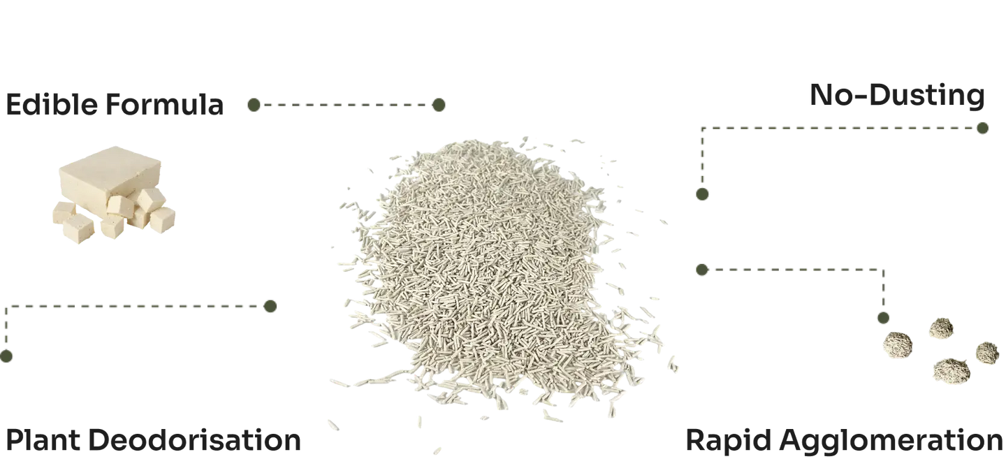 Keep your feline friend happy and your home clean with our Natural Tofu Cat Litter! 99% dust free and low tracking, it boasts a 91.9% ammonia removal rate and clumps quickly for easy cleanup. Plus, it dissolves in just 3 seconds, making it the purr-fect choice for busy cat owners.